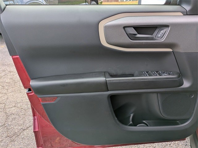 This Bronco Sport Big Bend is nicely equipped with Equipment Group 200A, 4-Wheel Disc Brakes, 6 Speakers, ABS brakes, Air Conditioning, Alloy wheels, AM/FM radio: SiriusXM, AM/FM Stereo, Auto High-beam Headlights, Automatic temperature control, Brake assist, Cloth w/Easy-to-Clean Front Bucket Seats, Compass, Delay-off headlights, Driver door bin, Driver vanity mirror, Dual front impact airbags, Dual front side impact airbags, Electronic Stability Control, Emergency communication system: SYNC 4 911 Assist, Four wheel independent suspension, Front anti-roll bar, Front Bucket Seats, Front Center Armrest, Front License Plate Bracket, Front reading lights, Fully automatic headlights, Heated door mirrors, Illuminated entry, Knee airbag, Low tire pressure warning, Occupant sensing airbag, Outside temperature display, Overhead airbag, Overhead console, Panic alarm, Passenger door bin, Passenger vanity mirror, Power door mirrors, Power steering, Power windows, Radio data system, Rear anti-roll bar, Rear Parking Sensors, Rear reading lights, Rear seat center armrest, Rear window defroster, Rear window wiper, Remote keyless entry, Security system, SiriusXM, Speed control, Speed-sensing steering, Speed-Sensitive Wipers, Split folding rear seat, Steering wheel mounted audio controls, SYNC 4 w/Enhanced Voice Recognition, Tachometer, Telescoping steering wheel, Tilt steering wheel, Traction control, Trip computer, Variably intermittent wipers, and Wheels: 17 Carbonized Gray-Painted Aluminum.