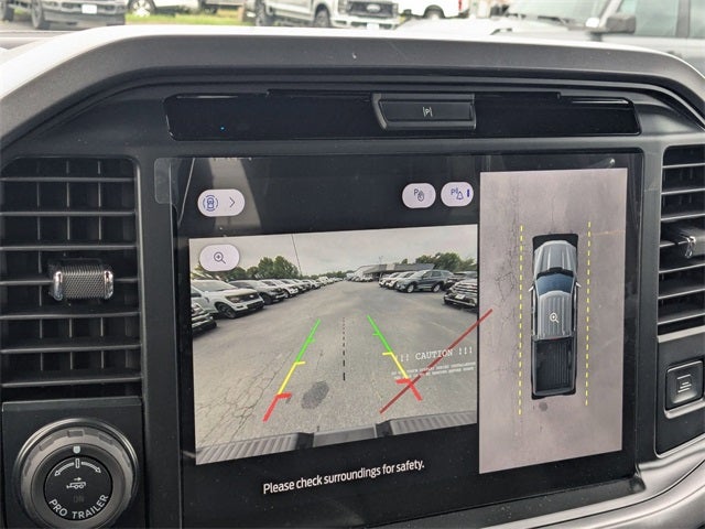 This F-150 XLT is nicely equipped with 3.5L PowerBoost Full-Hybrid V6, 4WD, 3.31 Axle Ratio, 4-Wheel Disc Brakes, 6 Speakers, ABS brakes, Air Conditioning, Alloy wheels, AM/FM radio: SiriusXM with 360L, Auto High-beam Headlights, Brake assist, Bumpers: chrome, Chrome wheels, Cloth 40/20/40 Front Seat, Compass, Delay-off headlights, Driver door bin, Driver vanity mirror, Dual front impact airbags, Dual front side impact airbags, Electronic Stability Control, Emergency communication system: SYNC 4 911 Assist, Front anti-roll bar, Front Center Armrest, Front fog lights, Front reading lights, Front wheel independent suspension, Fully automatic headlights, Heated door mirrors, Illuminated entry, Low tire pressure warning, Occupant sensing airbag, Outside temperature display, Overhead airbag, Overhead console, Panic alarm, Passenger door bin, Passenger vanity mirror, Power door mirrors, Power steering, Power windows, Radio data system, Radio: AM/FM Stereo w/SiriusXM 360L, Rear Parking Sensors, Rear reading lights, Rear step bumper, Rear window defroster, Remote keyless entry, Security system, Speed control, Split folding rear seat, Steering wheel mounted audio controls, SYNC 4 w/Enhanced Voice Recognition, Tachometer, Telescoping steering wheel, Tilt steering wheel, Traction control, Trip computer, Variably intermittent wipers, Voltmeter, and Wheels: 18 Chrome-Like PVD.