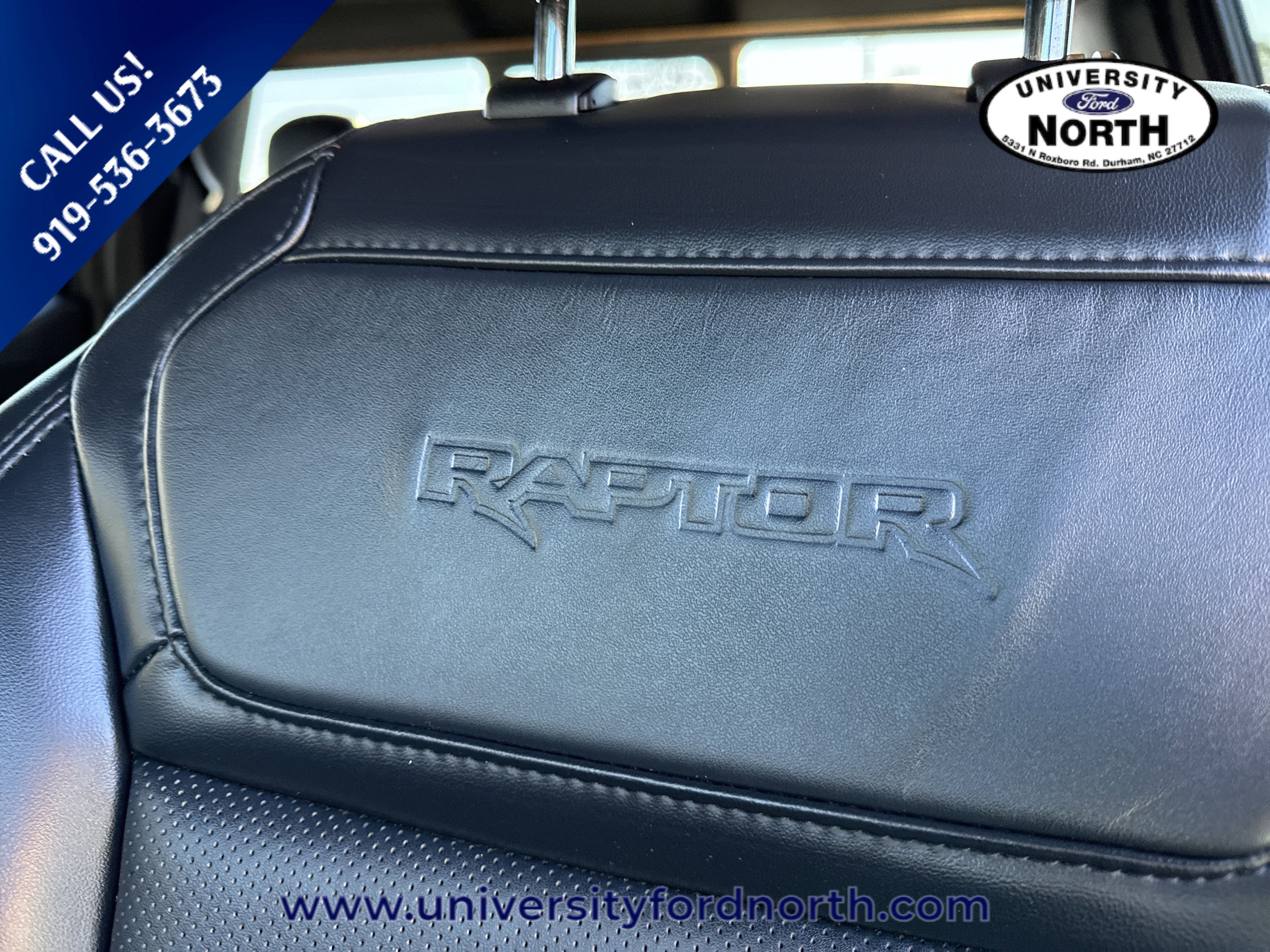 Experience unmatched off-road capability and premium refinement in this 2021 Ford F-150 Raptor SuperCrew, finished in aggressive Lead Foot with Black Leather Bucket Seats. This Raptor comes loaded with the highly desirable 801A Equipment Package, delivering advanced technology, exceptional comfort, and signature Raptor performance.Equipped with the High-Output 3.5L EcoBoost engine, 4.10 Electronic Locking Rear Axle, and 17 Forged Aluminum Wheels, this truck is built to conquer rough terrain with confidence. The Tow Technology Package adds enhanced trailering features, while the Power Tech Package brings added utility and convenience to every drive.Inside, you'll enjoy the immersive B&O Unleashed Sound System, premium materials, and an expansive Twin Panel Moonroof. A ToughBed Spray-In Bedliner and Tonneau Cover add durability and cargo protection for whatever the day demands.Key Features:Lead Foot exterior with Black Leather Bucket Seats*801A Equipment Package*B&O Unleashed Sound System*Tow Technology Package*Power Tech Package*4.10 Electronic Locking Rear Axle*Twin Panel Moonroof*17 Forged Aluminum Wheels*ToughBed Spray-In Bedliner*Tonneau Cover*54,715 milesLocated at:University Ford North5331 North Roxboro RdDurham, NC 27712ONLY AT UNIVERSITY FORD NORTH! CALL 919-536-3673!MANAGER'S SPECIAL!**, LEATHER**, BACK UP CAMERA**, PANORAMIC SUNROOF**, NAVIGATION / GPS**, MICROSOFT SYNC**, APPLE CAR PLAY**, ANDROID AUTO**, PUSH BUTTON START**, TOW PACKAGE / HITCH**, TWO SETS OF KEYS**, EXTENDED SERVICE CONTRACT AVAILABLE**, F-150 Raptor, 4D SuperCrew, 3.5L V6 EcoBoost, 10-Speed Automatic, 4WD, Lead Foot, Black w/Leather-Trimmed Bucket Seats, 17 Forged Aluminum Bead-Lock Capable Wheels, 360 Degree Camera, BlueCruise Prep Kit, Connected Built-In Navigation, Convenience Package, Electronic Locking w/4.10 Axle Ratio, Equipment Group 801A High, Forward Sensing System, Front-Axle w/Torsen Differential, Heated Steering Wheel, Integrated Trailer Brake Controller, Interior Work Surface, Leather Trim Seats w/Heated 2nd Row, LED Projector w/Dynamic Bending Headlamps, Navigation system: Connected Navigation (90-Day Trial), Partitioned Lockable Fold-Flat Storage, Power Tailgate, Power Tech Package, Power Tilt/Telescoping Steering Column w/Memory, Pro Power Onboard - 2KW, Pro Trailer Backup Assist, Radio: B&O Unleashed Sound System by Bang & Olufsen, Rain-Sensing Wipers, Rigid LED Fog Lamp, SYNC 4 w/Enhanced Voice Recognition, Tailgate Applique FORD, Torsen Package, Tough Bed Spray-In Bedliner, Tow Technology Package, Twin Panel Moonroof, Universal Garage Door Opener, Wireless Charging Pad.CARFAX One-Owner.Awards:* NACTOY 2021 North American Truck of the Year Call University Ford North at 919-536-3673.