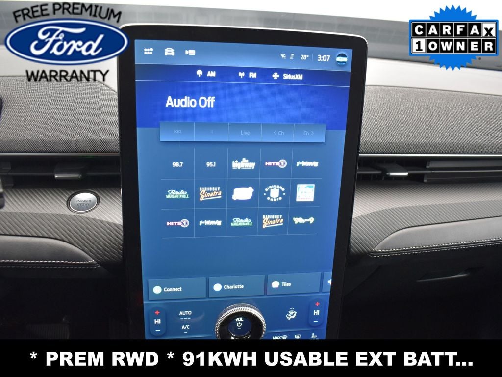 **FREE FORD FACTORY PREMIUM WARRANTY (12 MNTHS OR 12K MILES)**, **ONE OWNER**, **360 CAMERA**, **FORD CO-PILOT360 ASSIST 2.0**, ** FORD CO-PILOT360 ACTIVE 2.0**, **BLUECRUISE**, **NAVIGATION**, **DUAL ZONE TEMP CONTROL**, **HEATED FRT SEATS**, **HEATED STEERING WHEEL**, **DUAL POWER SEATS**, **POWER LIFTGATE**, **BANG & OLUFSEN SOUND SYSTEM**, **SYNC4**, **FORDPASS CONNECT 4 G WIFI MODE**, **TRITON PROTECT CAR CARE SYSTEM**, **TRITON PROTECT SILENT SECURITY THEFT DETERRENT SYSTEM**, **FULLY INSPECTED BY CERTIFIED TECHNICIANS**, **91KWH USABLE EXTENDED RANGE BATTERY **, ** J1772 CCS COMBO CONNECTOR **, ** ONE PEDAL DRIVE **, ** FIXED PANO ROOF **, 10 Speakers, AM/FM radio: SiriusXM with 360L, Auto High-beam Headlights, Delay-off headlights, Emergency communication system: 911 Assist, Equipment Group 300A, Fully automatic headlights, Low Tire Pressure Warning, Memory seat, Rain sensing wipers, Rear Window Wiper, Speed Control, Speed-Sensitive Wipers, Telescoping Steering Wheel, Tilt Steering Wheel, Variably intermittent wipers.